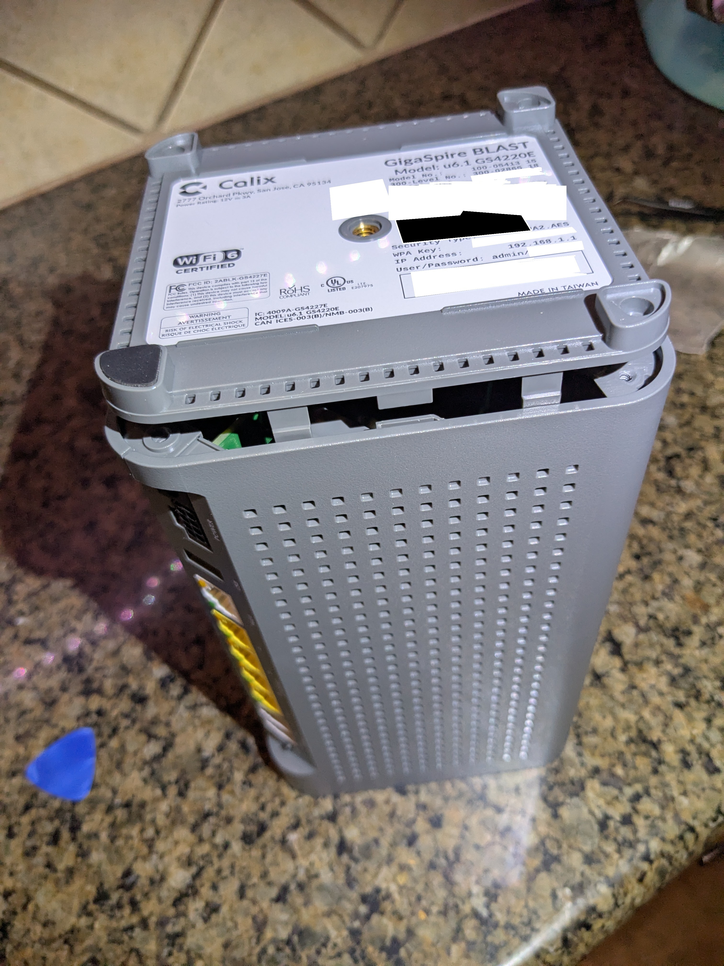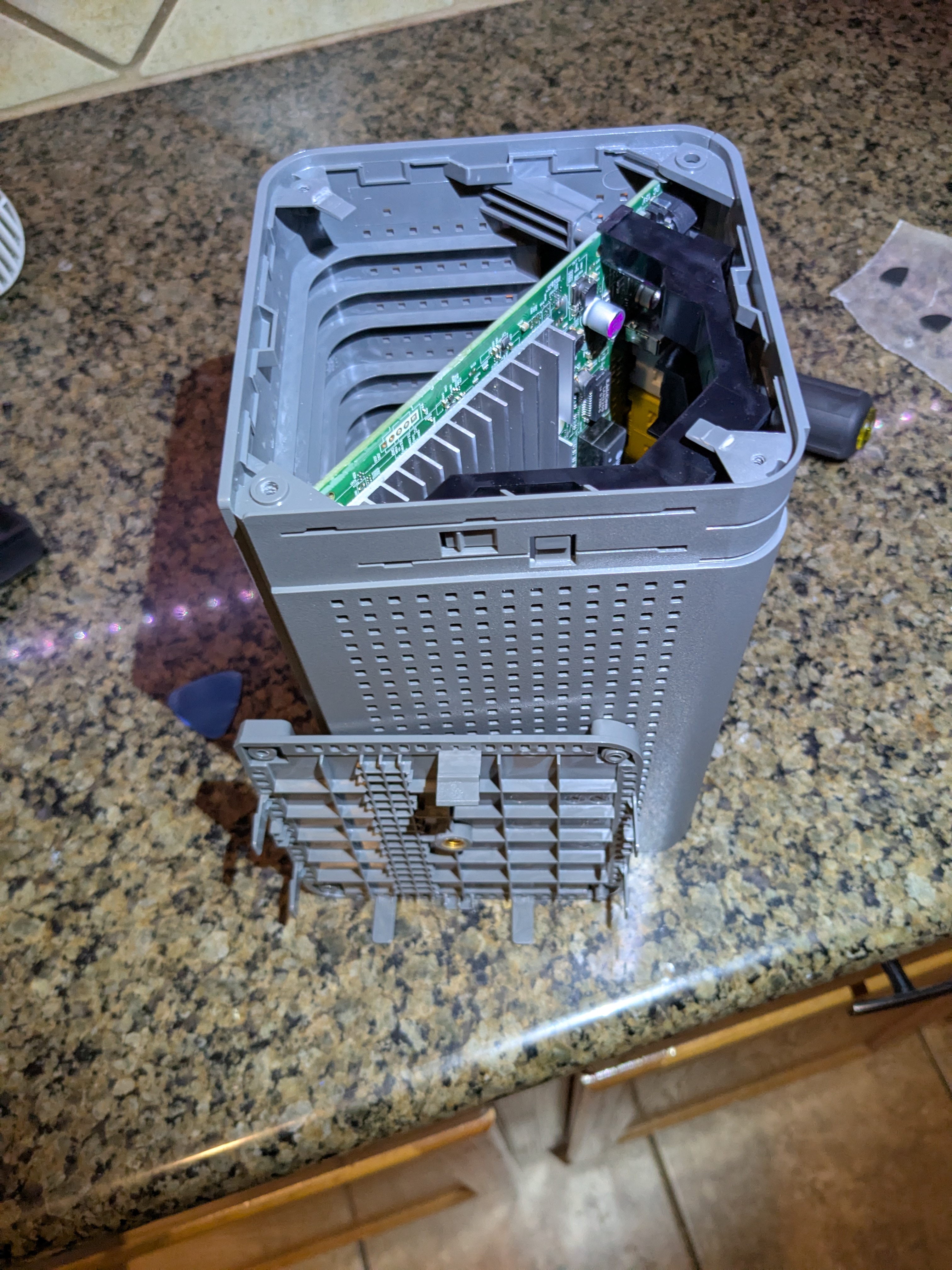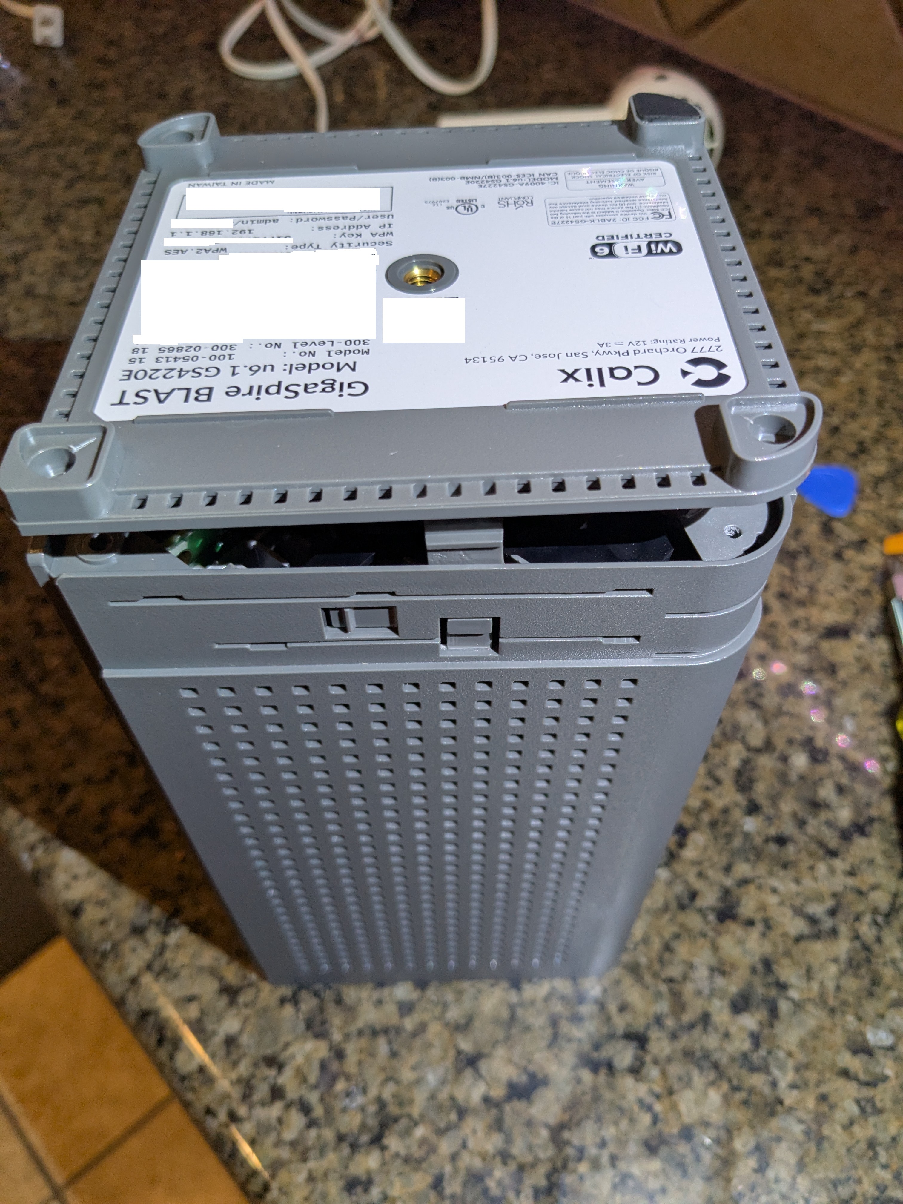 Removal of the bottom required 3 screws (under the rubber feet) and pushing some plastic clips in. I was able to do so without any plastic clips breaking. Useful FCC document: https://fccid.io/2ABLK-GS4227/Internal-Photos/Internal-photos-5245853.pdf Some photos of the process: |